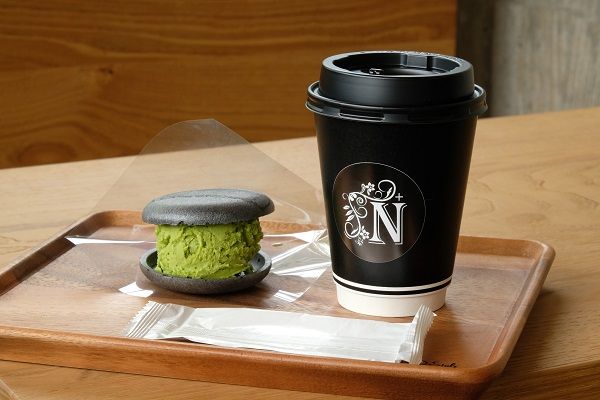 きれいに写真を撮りたい気持ちと、早く食べないとアイスが溶けちゃう焦りで葛藤。ひとしきり写真をとったら、まずホットコーヒーを一口。すっきりと飲みやすいコーヒーで一呼吸つき、最中アイスをいただきます。 黒色の最中にちょっとビックリ。一口食べると、パリパリッといういい音と、抹茶の深い香りがお口に広がります。温かいコーヒーと、甘くて冷たいアイスでリフレッシュ。手頃なサイズなので、ちょっと休憩したい時のお供にピッタリですね。外の景色を眺めながらいただいていると、日頃の慌ただしさを忘れて、心地よい時間を過ごすことができました。