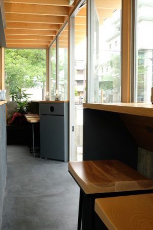 カウンター席の上には、個性的な電球のオブジェがあります。無機質で都会的な要素と、木製の温かみのある要素が組み合わさったスタイリッシュな空間。どの壁にも大きな窓があるので、外の光がたっぷり入ります。来店した日はうっすら曇っていたのですが、店内は明るく、外の景色と一体になったような開放感がありました。野見神社の境内の木々や、高槻城公園芸術文化劇場の緑など、自然を身近に感じることが出来ます。