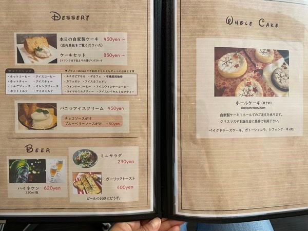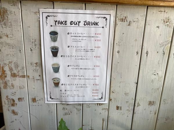 またレジ下にテイクアウトのメニューが! お散歩途中にコーヒーをテイクアウトして、飲みながら優雅にお散歩できたら最高だろうなー! と妄想してしまいました。コーヒーのテイクアウトができるって、とっても嬉しいですよね♪