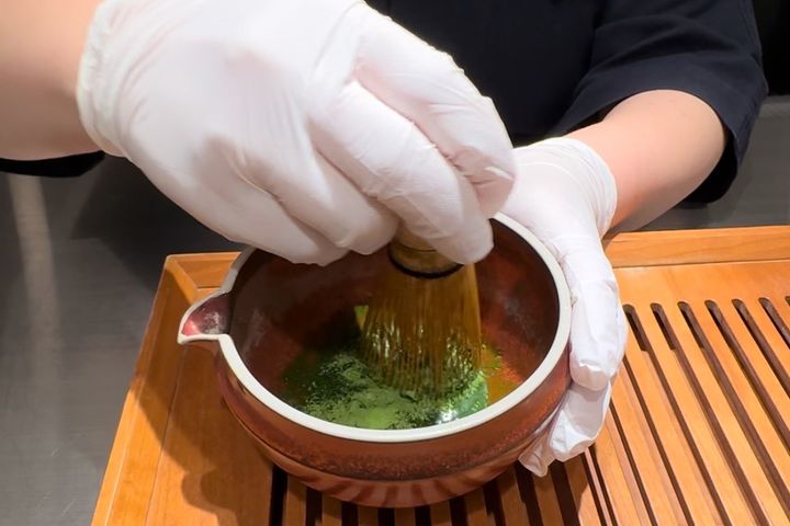 スイーツにもその場でたてたお茶をかけて食べるという贅沢なメニューが!