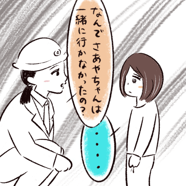 なぜおーちゃんは母親と一緒に出掛けていないのか聞かれると、おーちゃんは少し沈黙した後、