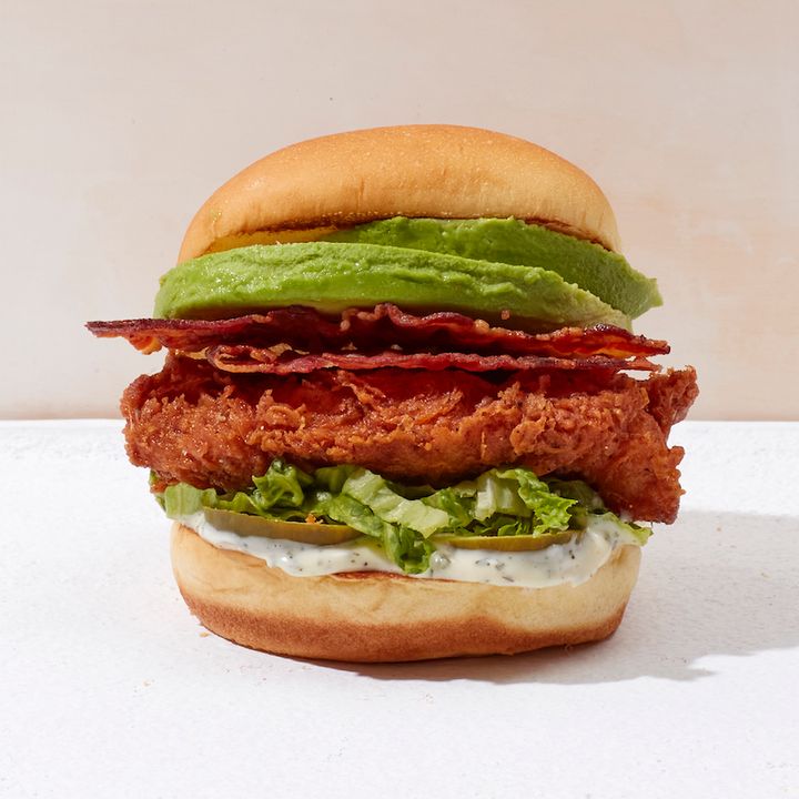 衣に数種類のスパイスを効かせたスパイシーなチキンフライ、アボカド、ベーコン、レタス、ピクルス、自家製のハーブマヨソースをトッピング。3種類のハーブが爽やかに香るソースがアボカドやベーコンにもよく合い、ビーフとは違った味わいをお楽しみいただけます。