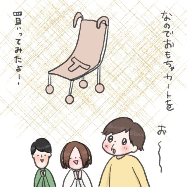 乗るより押したい派です!おもちゃのカートをゲットしたら豹変した2歳息子|ねむりひつじの子育て絵日記