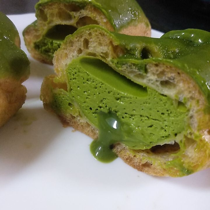 断面切って少ししたら、抹茶ソースが中からとろーってでてきてびっくり。