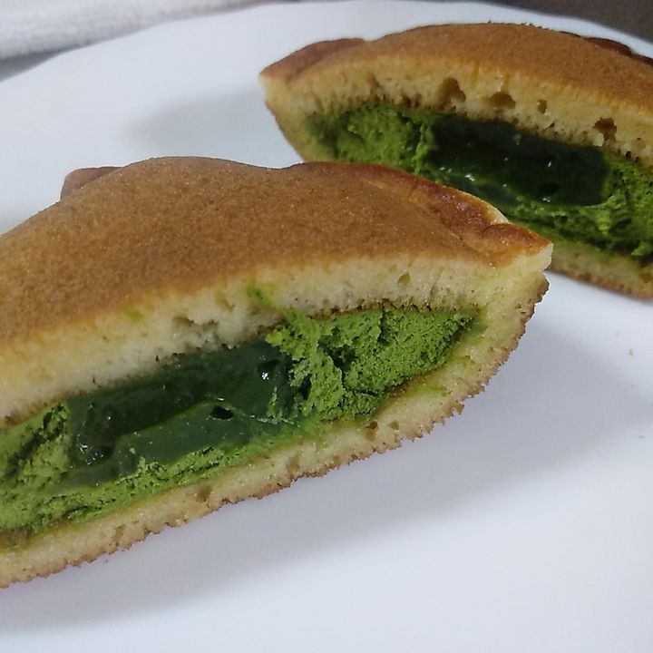 おなじみのもちふわなどら焼き生地に、抹茶クリームと抹茶ペーストが入っています。
