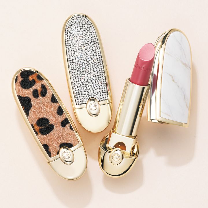 相手をイメージしながら全40種のカラーと9つのケースを組合わせ。濃密なカラーとリップケアを兼ね備えた大人のためのリップです。ルージュ ジェ(サテン) 518 ¥5,170ケース〈左から〉フォーグ・ストラス・マーブル各¥4,730(すべてゲランお客様窓口)