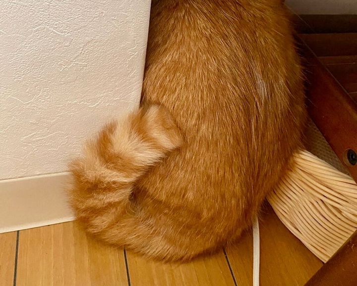 知らないおじさんがおうちに来たー!!! シッポくるん……。(ガクガクブルブル)