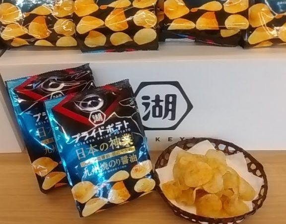 令和になり、どんどん進化してポテトチップスにも『神業』クラスのものが出ている。噂には聞いていたのだけど、なんと地元の道の駅で『湖池屋プライドポテト 日本の神業 九州焼のり醤油』完成披露発表会があるというので、取材に行ってきました。