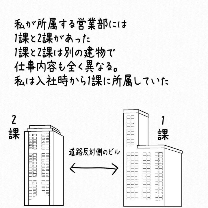 おとさんは、営業1課で仕事をしていました。この会社の営業は1課と2課に分かれていて、建物の別、業務内容もまったく違うという特徴があります。