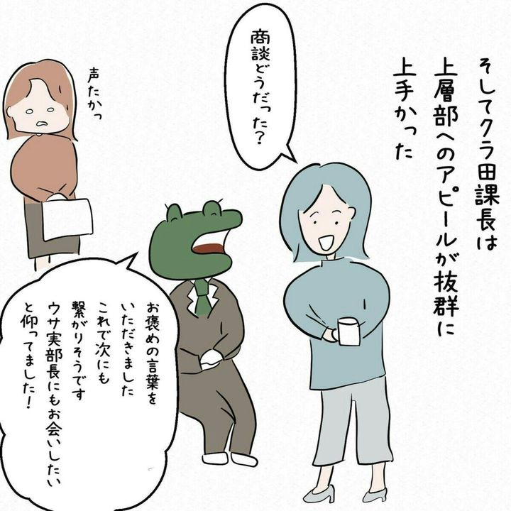 2課に行ったおとさんは驚きます。社員の表情が暗く、覇気を感じません。どよんとした空気の原因は2課の課長、クラ田のようです。高圧的な態度で部下を見下すようなクラ田。そのせいで、離職率も異様に高いようです。誰もそんな人の下では働きたくないですよね。