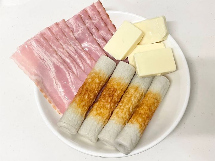 レシピを見つけたのはYouTubeチャンネル馬場ごはん〈ロバート〉Baba‘s Kitchen。こちらはご存じ、芸人のロバート馬場ちゃんが運営しています。チャンネル登録者数123万人で、簡単に作れておいしいレシピをたくさん紹介していますよ。今回は数あるレシピの中から気になった「ちくわチーズベーコン」を作ります。材料2つをちくわに詰めて巻いて焼くだけなので簡単そう♪