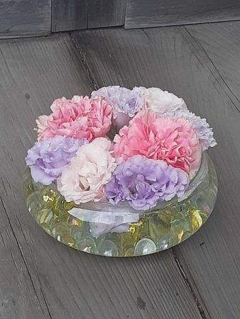 「手水舎」に季節のお花を浮かべたもので、心を清め参拝者の癒しになるように…と、各地域で始まったそうです。