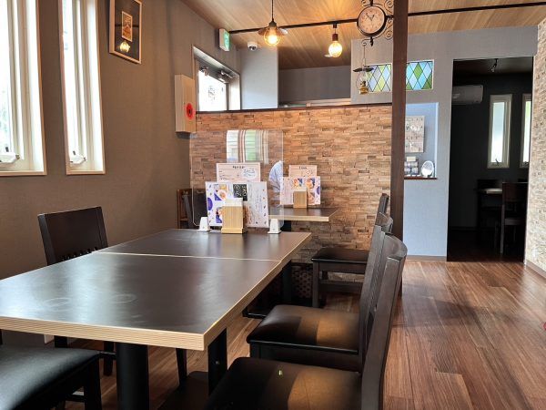 カフェ わだちさんは、木目を基調としたブラウンで統一された、落ち着いた店内となっています。