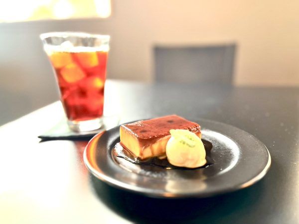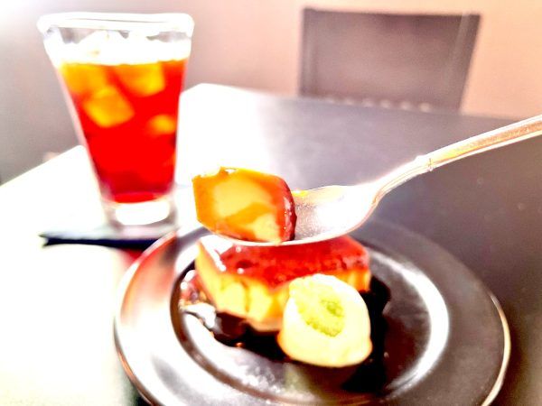 こちらのプリンは「焦がしカラメルの大人のプリン」というメニュー名で提供されていて、その名の通り通常と比べるとだいぶ苦みがあります。そんな苦みと相性の良いオレンジリキュールを甘さ控えめなプリン本体に使用していて、固めに焼き上げられたプリンの傍らにはミニアイスも添えられています。これぞ「大人のためのプリン」といったお味でした☆