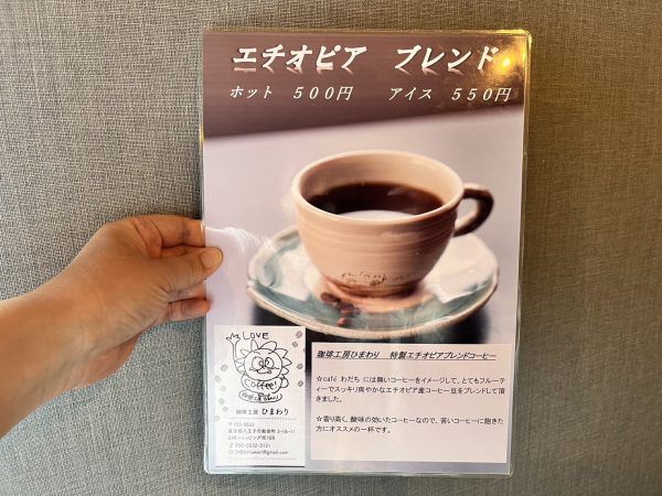 ですがそれとは別に、西八王子駅近くで営業されている珈琲工房ひまわりさんのエチオピアブレンドもメニューにありました。