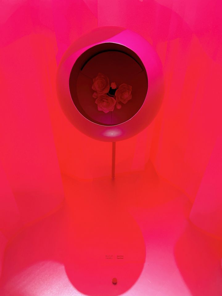 足元のボタンを押すと、それぞれの花の香りが小さなドームから噴出されます。