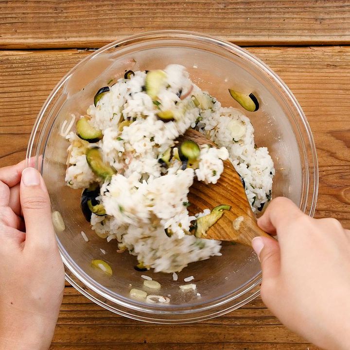 3. やみつき夏の味…!なすのさっぱり混ぜご飯