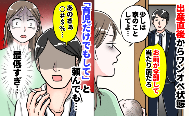 「家事育児は全部お前がして当たり前」出産直後の私にワンオペしろと言う夫⇒さらに最低な発言が続き…