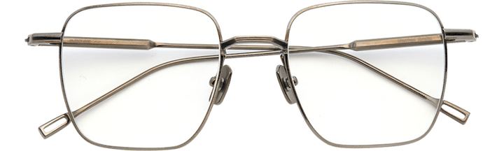 シルバーフレームメガネ¥47,300(NATIVE SONS/プライベート アイズ アンド トラッカーズ)