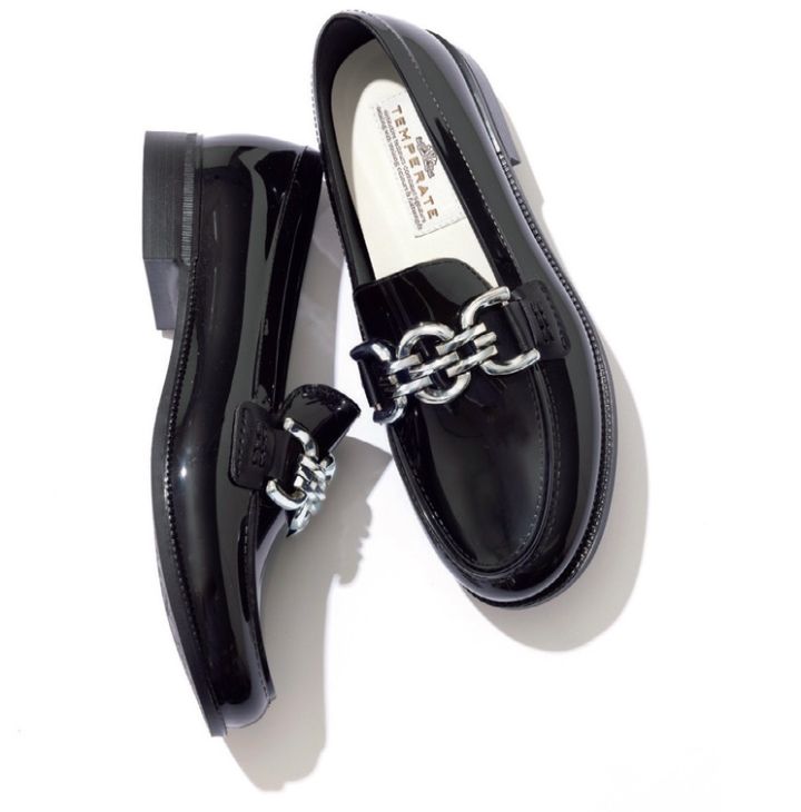 「お洒落は足もとから」を肝に銘じ、雨靴見えしない機能性ラバーシューズをセレクトしたい。ローファー、スリッポン、パンプスなどオフィスになじむきれいめデザインを選択。 ビットローファー8580円(テンパレイト/ル タロン プリュ 有楽町マルイ店)