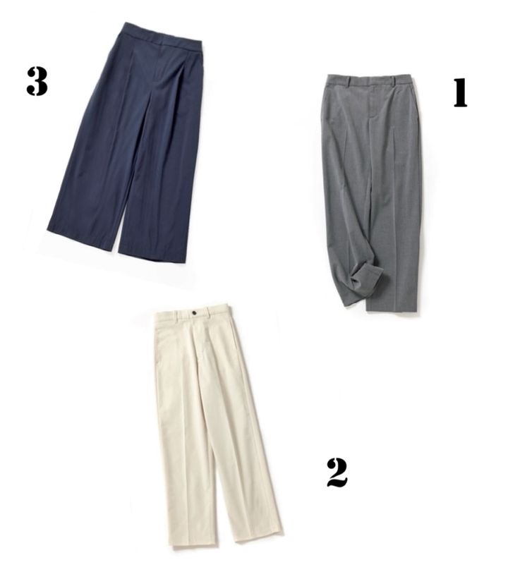 1.ウエスト隠しゴム、前後センタープレスで後ろ姿もすっきり。洗濯機で洗えるからいつも清潔。2990円(ジーユー) 2.ポケットが5つ付いたはっ水ストレッチパンツ。お家洗い可能。1900円(ワークマン) 3.サラサラの肌触りが続く接触冷感のウエストゴムパンツ。お家洗い可能。1万8920円(リフレクト/ワールド プレスインフォメーション)