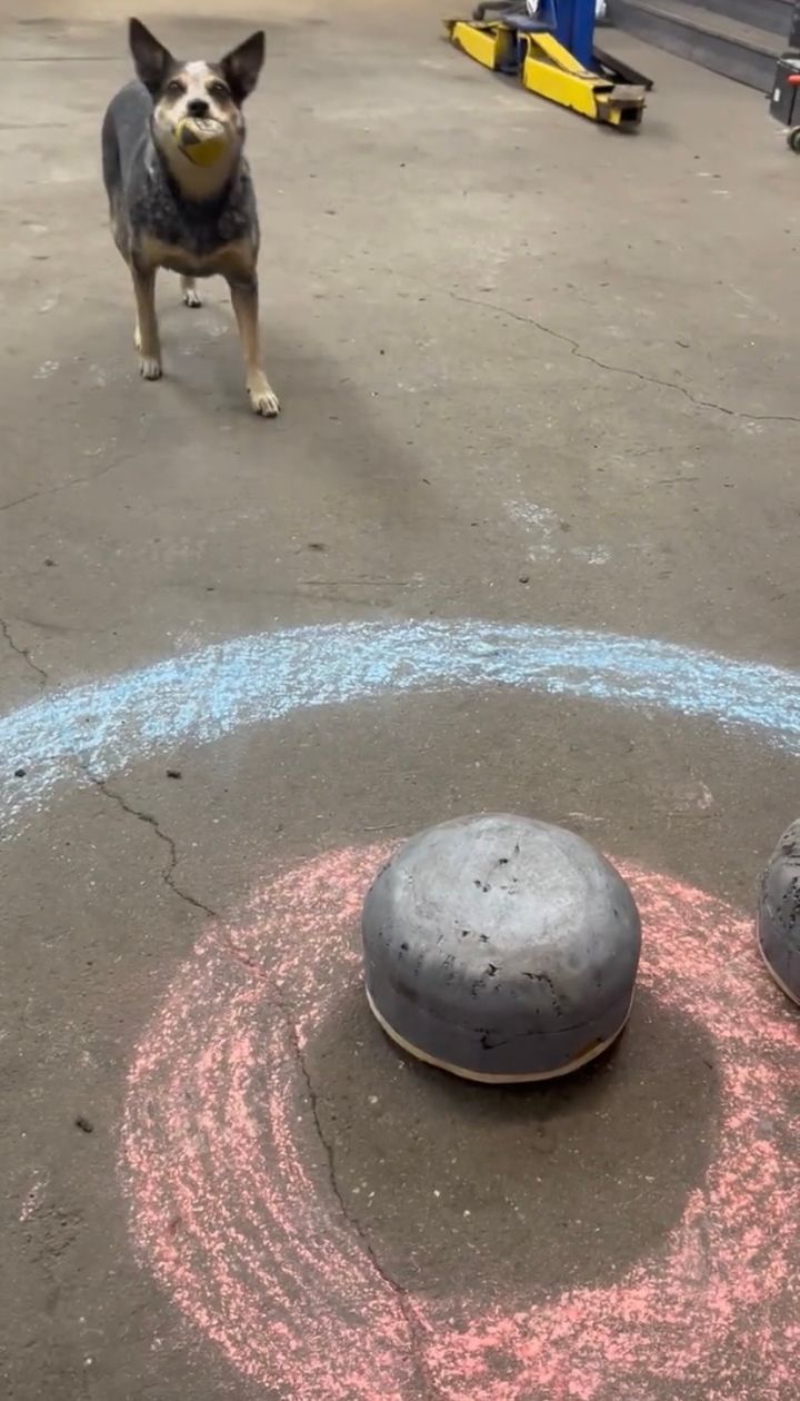 狙いを定めて・・イヌがストーンをキック!その特技は『あのスポーツ』!?【アメリカ・動画】