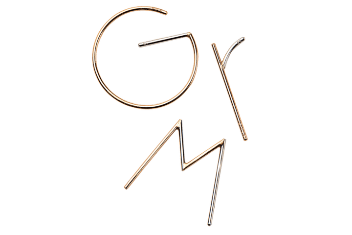 アルファベットピアス[K18PG×K18YG×PT]各¥24,200(全てカフカ/ハルミ ショールーム)