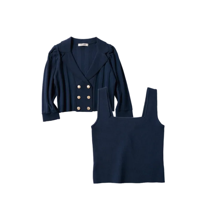 ネイビースクエアニットタンクトップ 5,390円、ネイビーニットカーディガン 9,790円/ともにCOCO DEAL(ココ ディール)