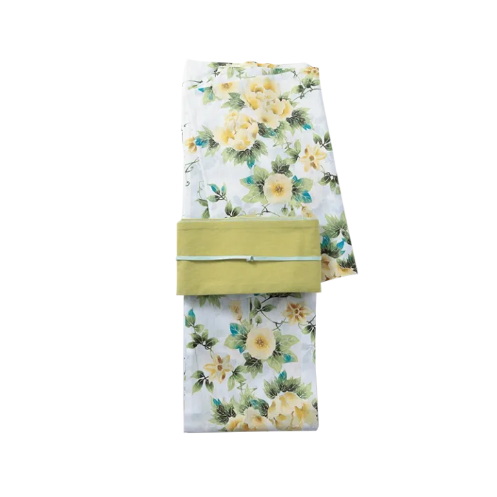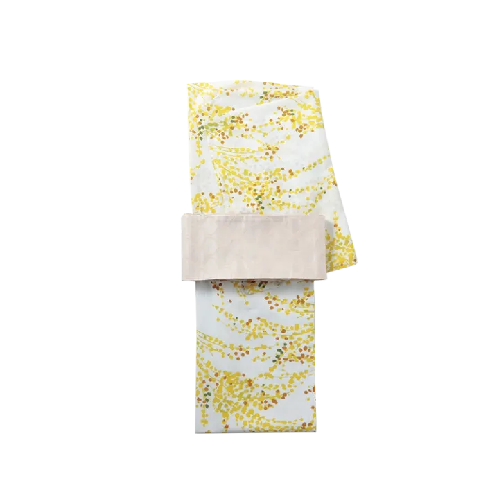 水彩画風のやさしいイエローで女性らしさをプラス。帯もイエローであわせてみて。