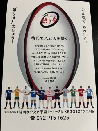 【中央区警固】「楕円で人と人を繋ぐ」珍しい!ラグビーバーで占い