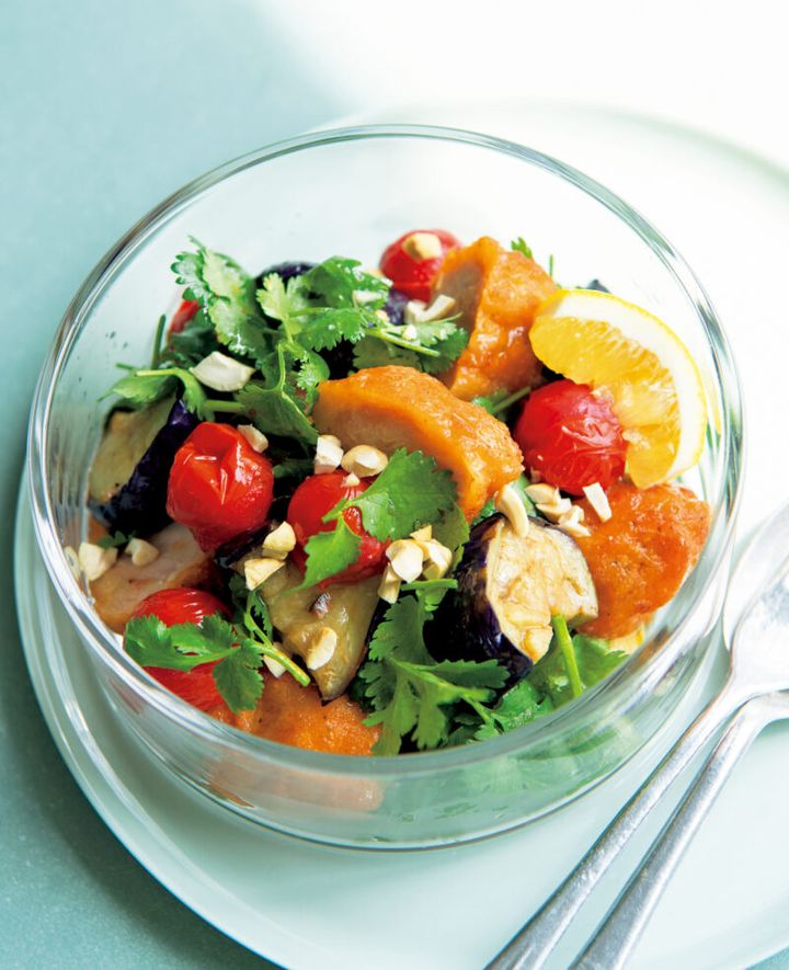 彩り鮮やかでボリュームたっぷり 「から揚げと揚げなすのエスニックサラダ」