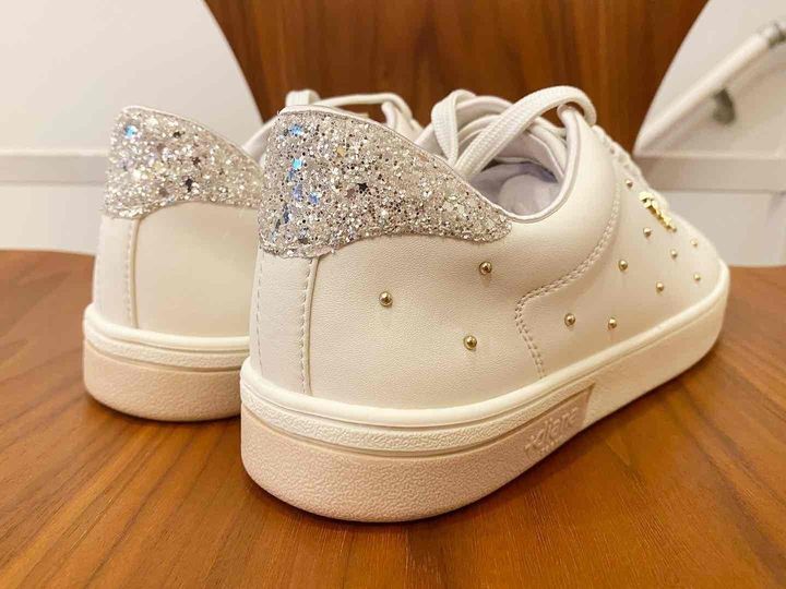 カラーはこちらのホワイトとブラック、デニムの3色をラインナップ。かかと部分のピンク色とシルバーのグリッターが好みで、迷わずこちらのカラーを選びました。