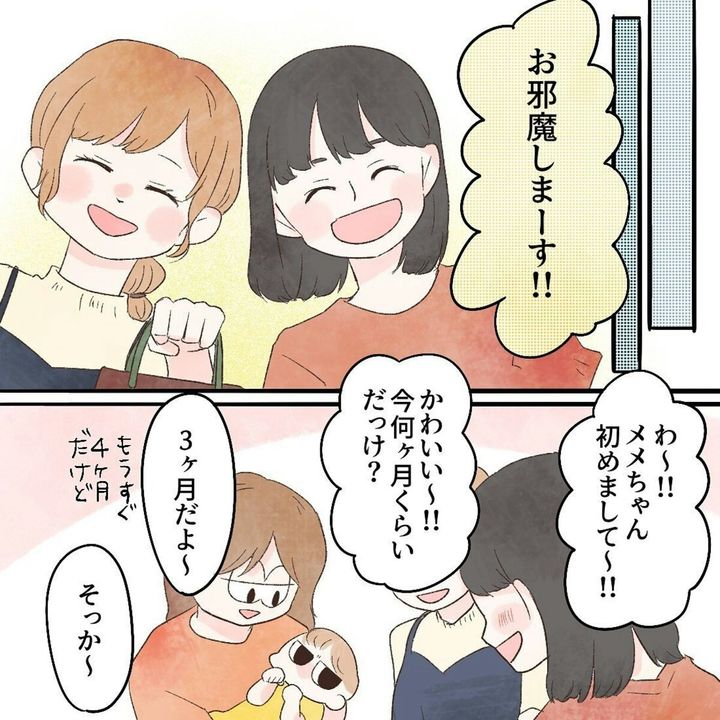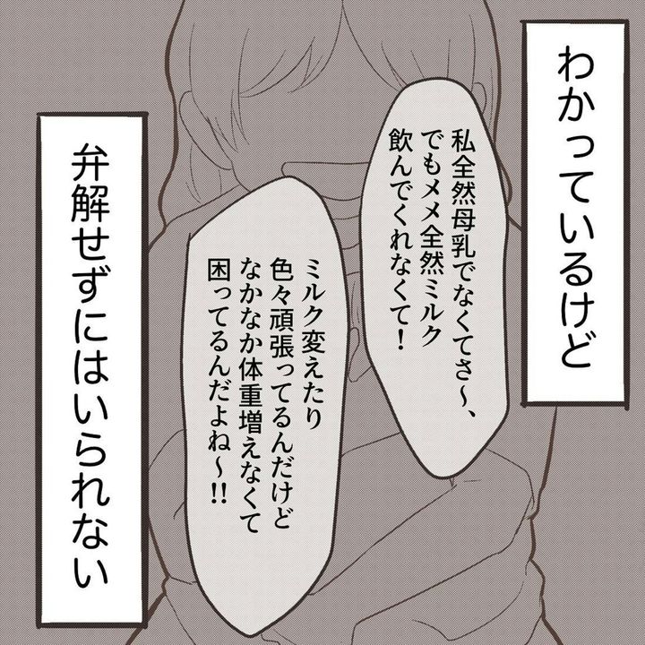 なかなかミルクを飲んでくれず、体重が増えない娘・メメちゃんの育児に悪戦苦闘していました。そんな中、友人たちが遊びに来てくれましたが、どうしても友人の言葉が引っかかってしまいます。