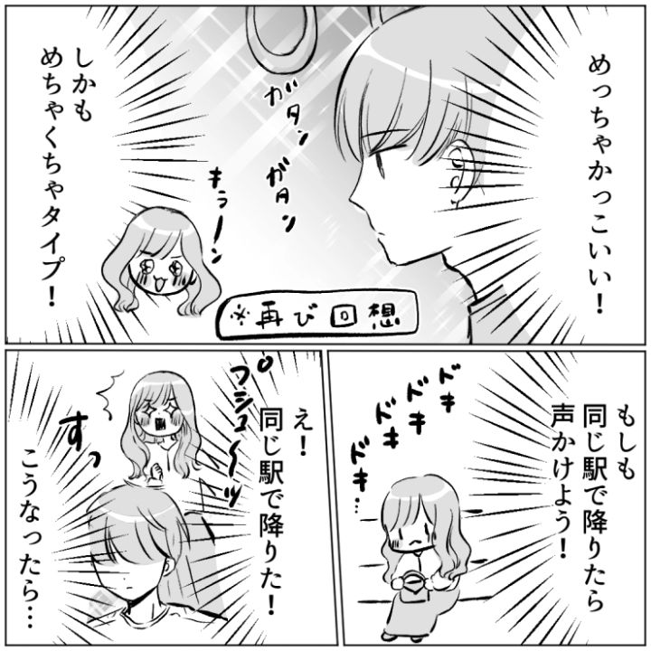実際に読者が体験したリアルエピソードを漫画化!今回は同じ電車に乗っていただけの男性にもアタックしてしまう、行動力が高い女子のエピソードをご紹介します。