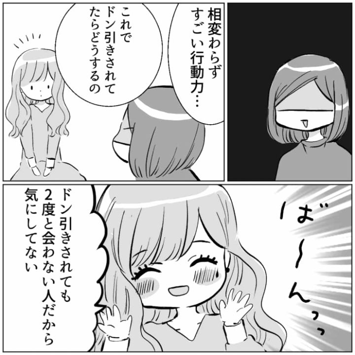 主人公の友達はとんでもない行動力の持ち主。ある日友達の話を聞いていると、持ち前の行動力が発揮された驚きのエピソードを聞かされ・・・。