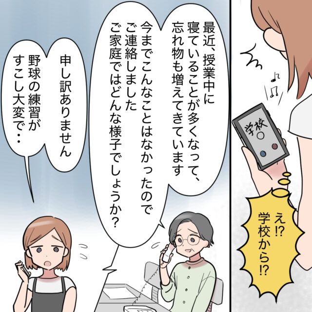 「最近、授業中に寝ていることが多くなって、忘れ物も増えてきています。今までこんなことはなかったのでご連絡しました。ご家庭ではどんな様子でしょうか?」