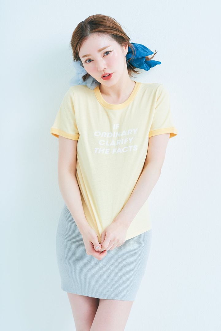 Tシャツコーデを格上げする大ぶりシュシュのMIX使い