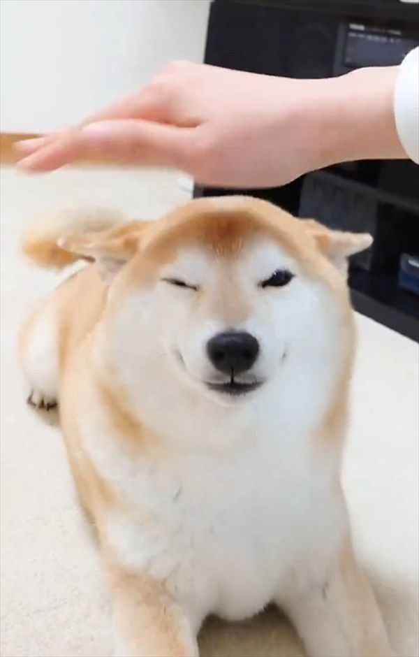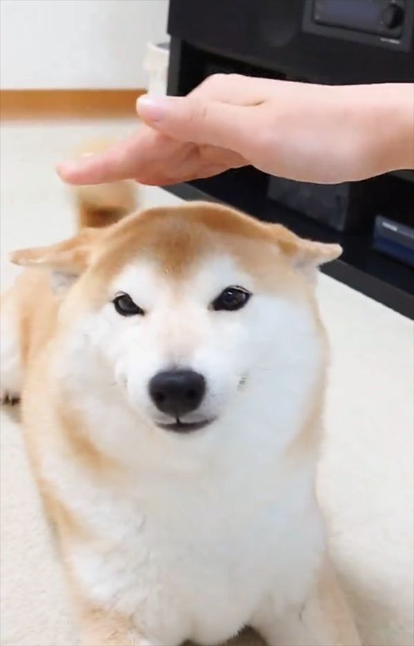 柴犬『チャーミー』ちゃんは、飼い主さんになでなでしてもらっているところ・・・と思いきや、飼い主さんがしていたのは「エアなでなで」でした! 手は宙にういているので、実際にはチャーミーちゃんのことをなでなでしていません!?