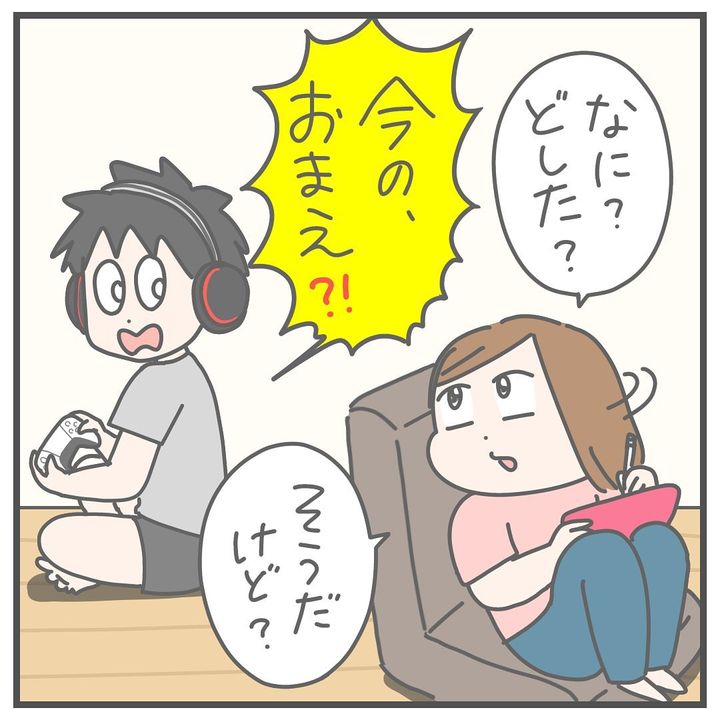 夫「えっ?!」妻「なに?どした?」ゲーム中、突然“振り向いたワケ”に「面白過ぎ」「良い技」