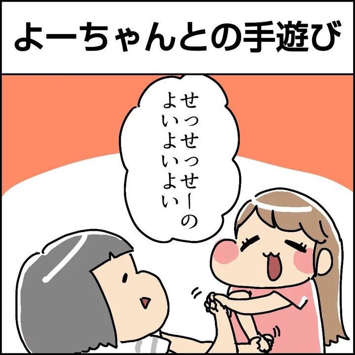 懐かしい手遊びを、我が子と楽しめるのはとてもうれしいことですよね。満面の笑みを浮かべながら、よーちゃんと手遊びを楽しむぼぶさんの姿が印象的です。