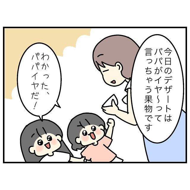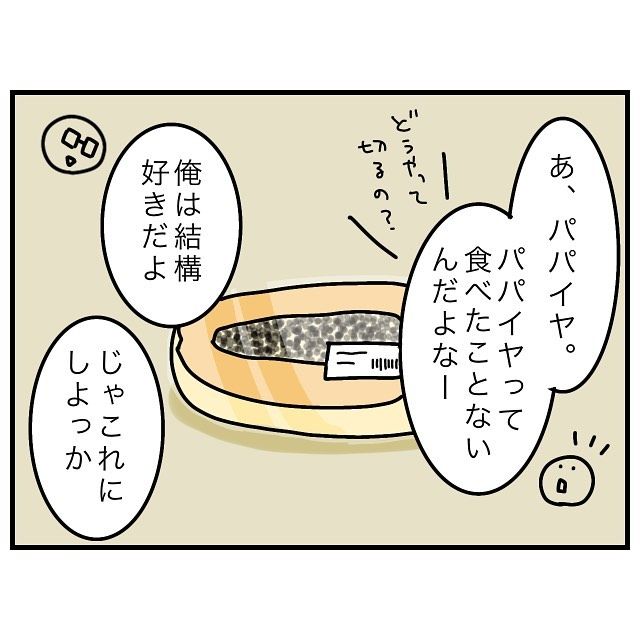 日本に住んでいると、パパイヤを食べる機会はあまりありませんよね。少し癖があるので、子ども向けではないのかもしれません。「名前変えるな」という、夫のツッコミが秀逸です!