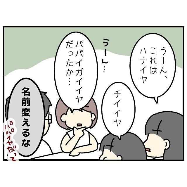 パパイヤを購入してみたぷにらーさん。食卓に並べますが、「うーん、ハナイヤ」「チイイヤ」と、あまり反応がよくなく、「パパイガイイヤだったか…」と呟くのでした。