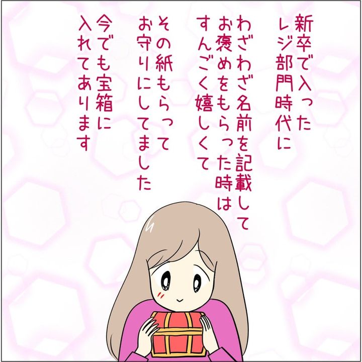 投稿元のコメント欄には「なんて優しい世界なのでしょう」「妊婦の時親切にしてもらった店員さん覚えてますよ~」「お褒めの言葉をお守りに、ほっこり」といった声が寄せられていました。あとみさんは、「お褒めの言葉の紙をお守りに そして今でも宝箱に 書いた方が知ったら感激しますね」とコメント。素敵なエピソードばかりで、胸が熱くなりました!