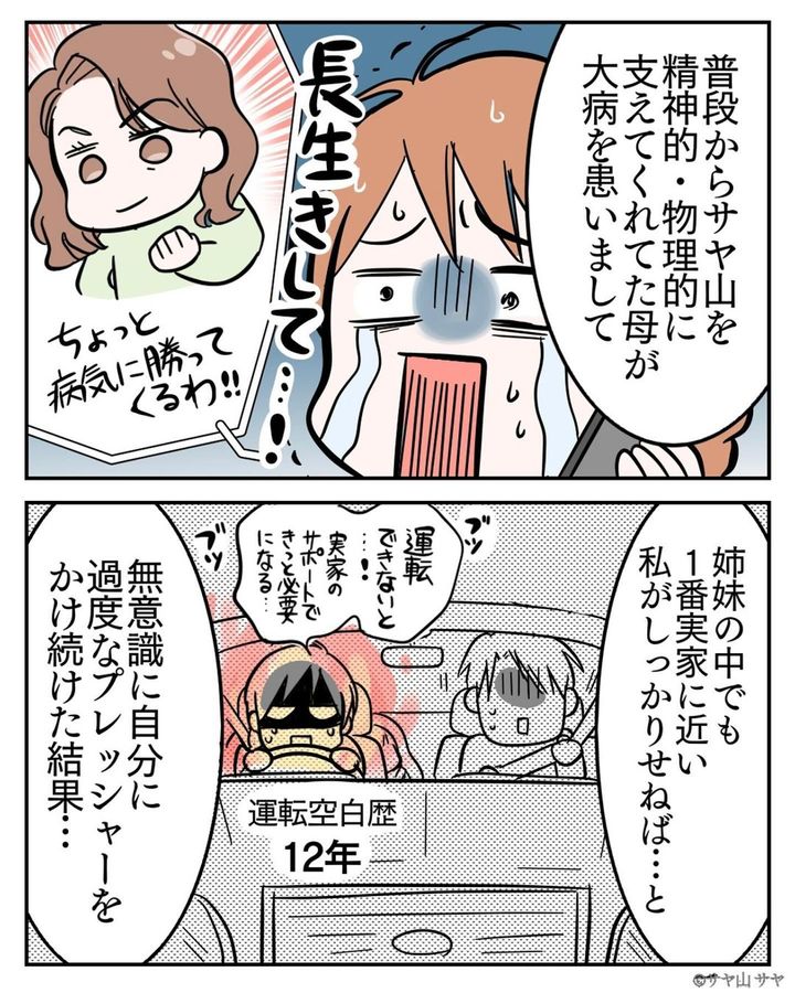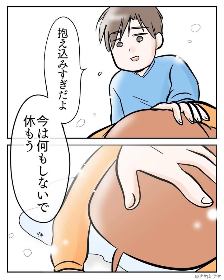 頑張り屋さんほど、いろいろなものをひとりで抱え込み過ぎてしまうのではないでしょうか。投稿元のコメント欄には「身内に何かあると、自分が頑張らないとと気負ってしまうのわかります」「無理しないでって声かけてくれる夫さんで良かったねぇええ」などの声が寄せられていました。
