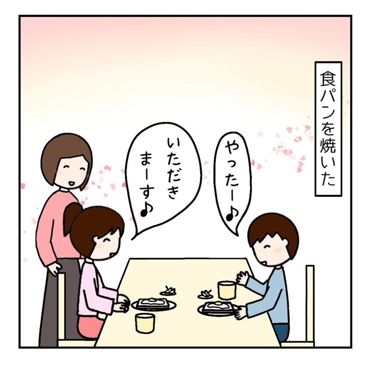 朝食に目玉焼きトーストを食べる長女のせなちゃんと長男のたくとくんですが…?