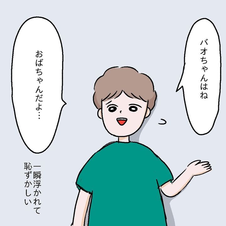 「お店で見たときよかったんだけど今みるとイマイチかも…」と、がっかりしていたははこさん。そこに帰ってきた息子さんが「なんかちょっとバオちゃんっぽいかな」と言ったそう。“バオちゃん”を芸能人か何かだと思ったははこさんは、ちょっぴりうれしい気持ちに。しかし「バオちゃんはね、おばちゃんだよ…」と言葉の真意を知り、一瞬浮かれた自分を恥ずかしく思うのでした…。