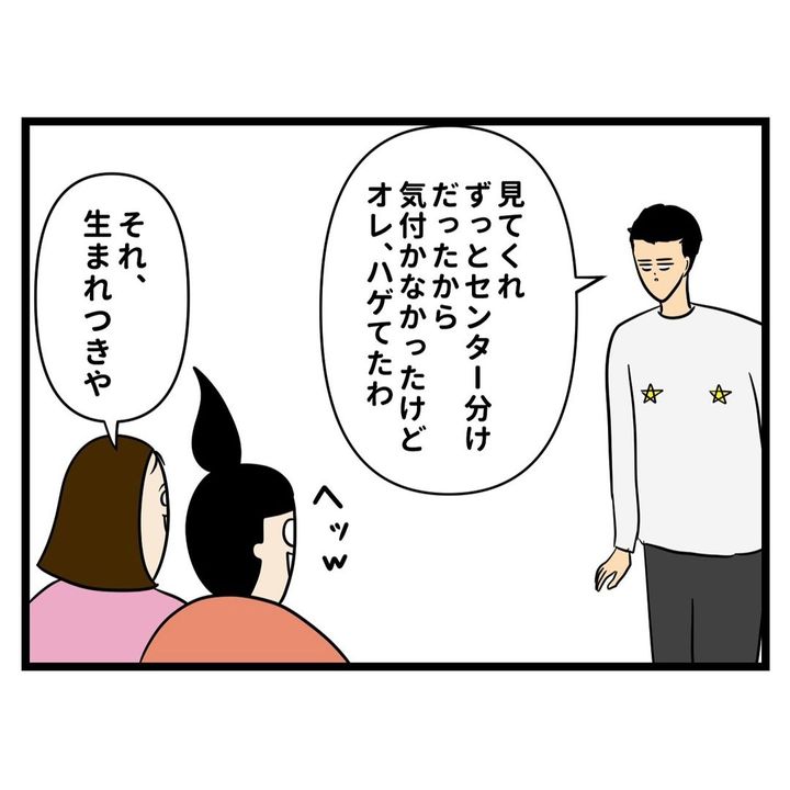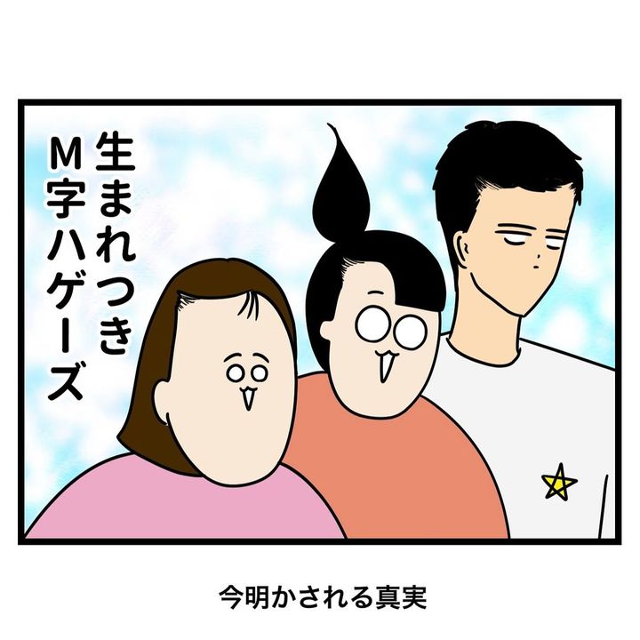 コメント欄には、「ワイもM字ハゲーですでもただの年とってハゲていったやーつです」「私も同じやからたぶん先祖いっしょだわ」「私も一生ハゲとは無縁だと思ってたのに先日頭洗っていてオールバックになったとにふとM字と目が合いました」「私も仲間だ〜!」といった声が寄せられていました。「今明かされる真実」という結びも秀逸ですね!