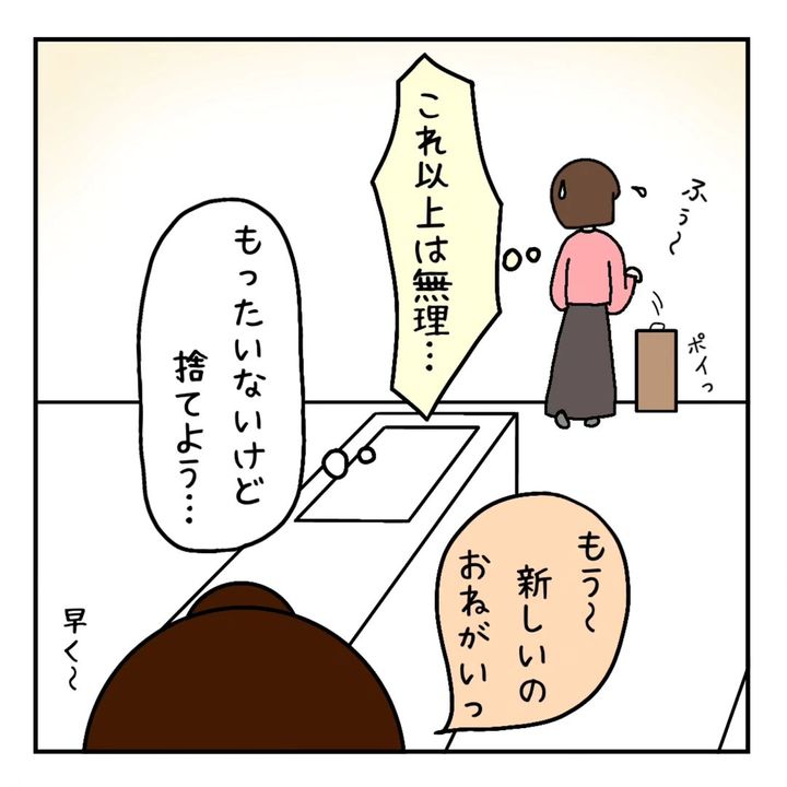 ちなみに、komorebi_kirariさんの夫さんは、わりと早めに捨ててしまうそうです。いやいや、もったいない!投稿欄に寄せられた耳寄り情報も活用しつつ「これ以上は無理…」となるまで、ぜひ使い切りましょう…!