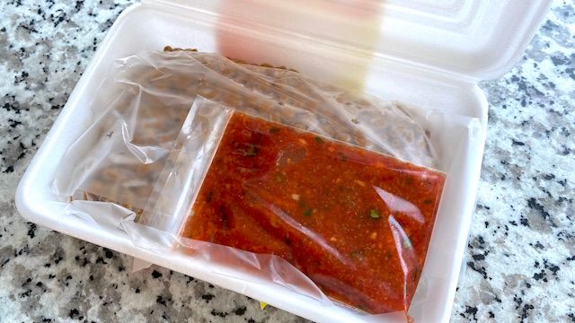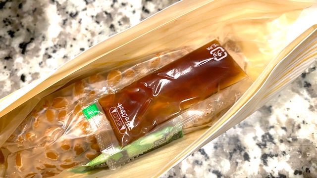 そんな個人的な理由から選んだ一品でしたが、開封してびっくり。キムチたれと納豆が別々になっています。自分で混ぜるタイプだったのですね!