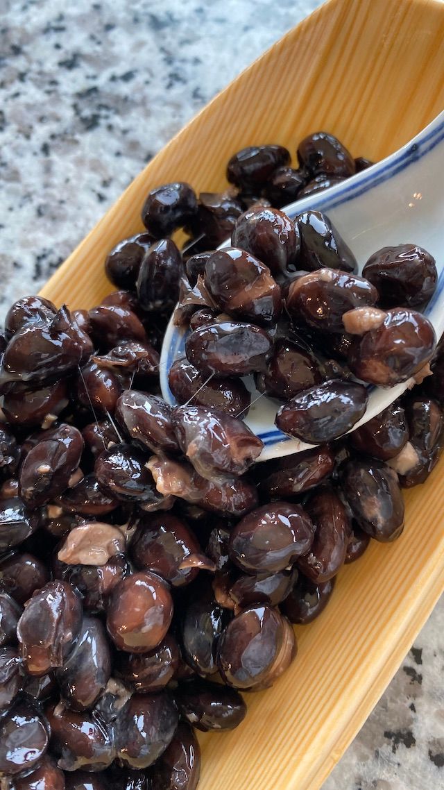 アドバイスの通りワサビのっけでいただきます! 塩切された黒豆は、ふっくら芳醇で風味豊か。ワサビと相性抜群です。塩麹のように丸みのある塩味が、黒豆と完全に1つになっていて、とても上品。ちょっとおもてなし感がある納豆です。